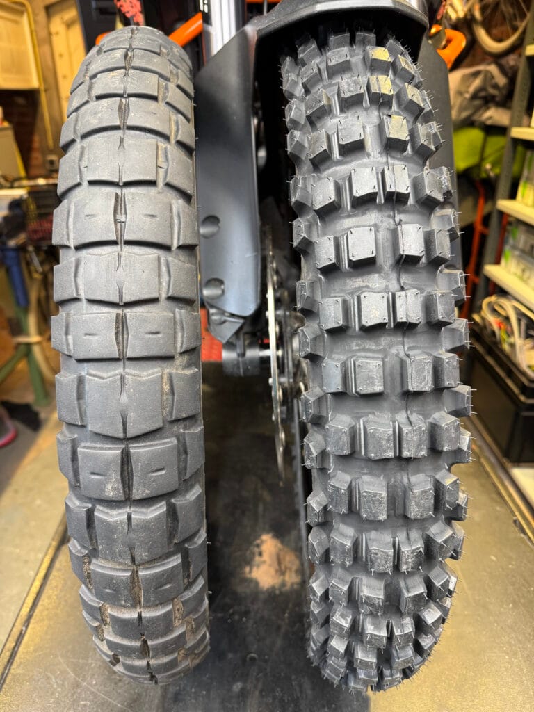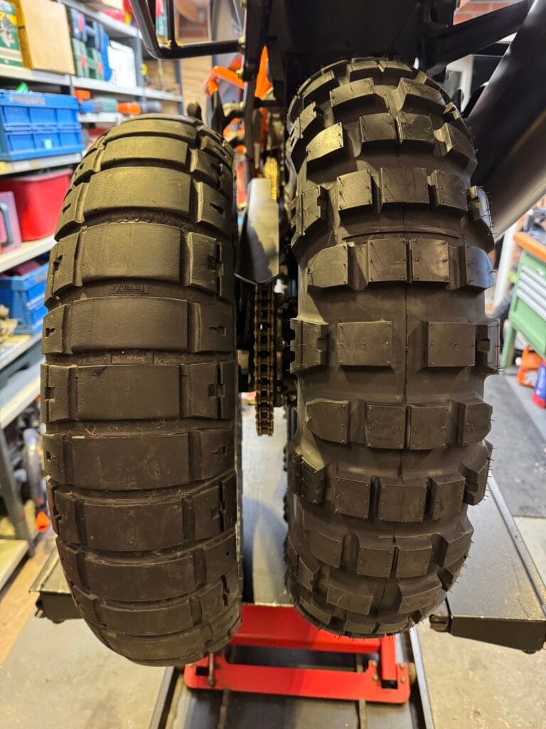 Michelin Tracker (10/90)TKC70 (70/30) (L) en Scorpion Rally STR (60/40) achterbandTKC70 en Scorpion Rally STR voorbandTKC70 (L) en 2x Anakee Wild, elke achterband na ongeveer 3.000km…Pirelli Scorpion Rally STR (60/40) (L) en Mitas Trail XT+ (20/80) voorband